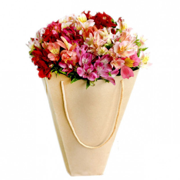 Состав: Альстромерия 35шт., Пакет крафт с аквабоксом