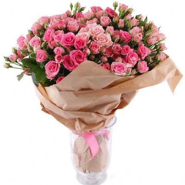 Состав: Упаковка для букета: крафт-бумага, Роза кустовая 15шт.